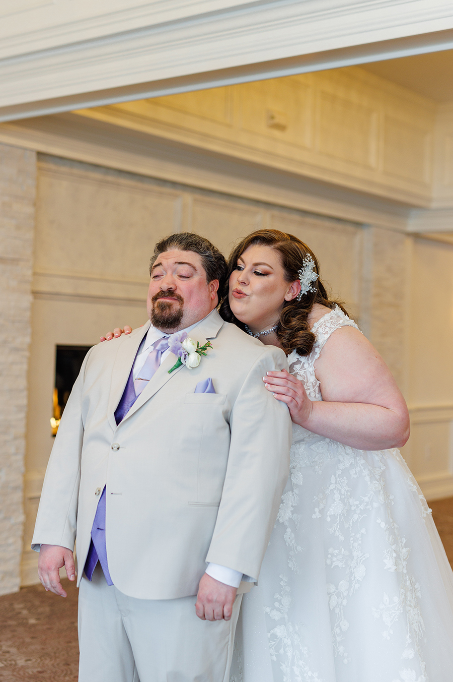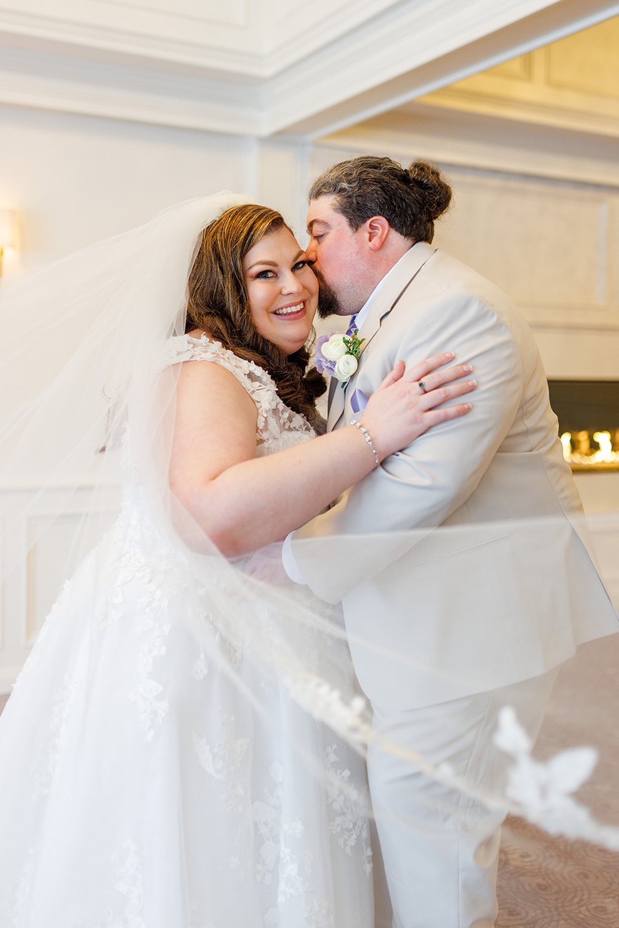 Jennifer and Kevin got married at the Grand View - gorgeous waterfront venue on pristine Lake Nipmuc and we were honored to capture their beautiful day! We've met Jen & Kevin for the first time during their engagement session and enjoyed every minute working with this sweet and kind couple. It was easy to see how special their relationship is and how much these two adore each other! On the day of their wedding Jennifer looked like the most glamorous Hollywood movie star, radiating excitement and joy! We really loved lavender & mint wedding color palette with mint bridesmaids dresses and light beige suits for the groom and the groomsmen - so fresh and fitting for the spring time!