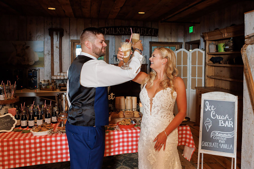 In a departure (hehe!) from the traditional wedding cake, Cailey and Mark opted for a homemade ice cream bar with rootbeer floats and any kind of toppings you can think of!