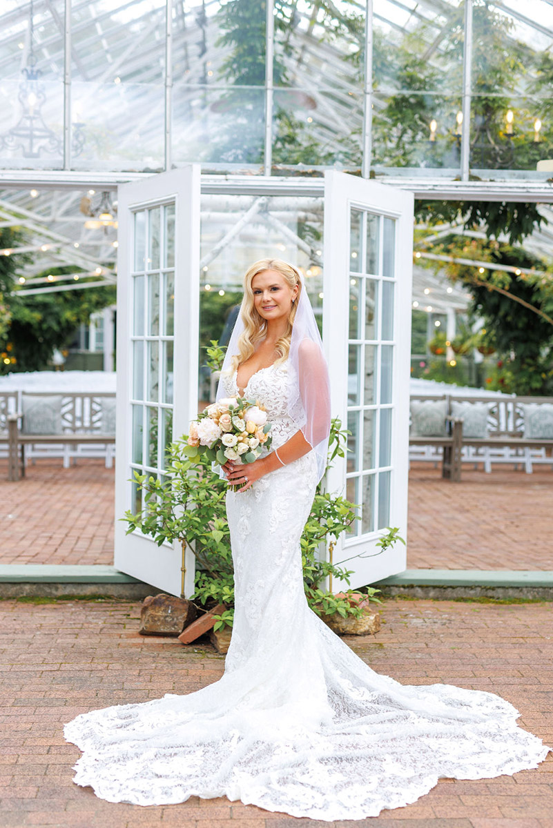 Since the weather has been so unpredictable this year, Cailey and Mark chose to hold their ceremony inside the gorgeous greenhouse. And it was the best decision ever! - sunlight filtering through the glass and rose bushes created a warm and oh-so-romantic atmosphere, and the birchwood arch with the most beautiful floral arrangement looked so delicate!